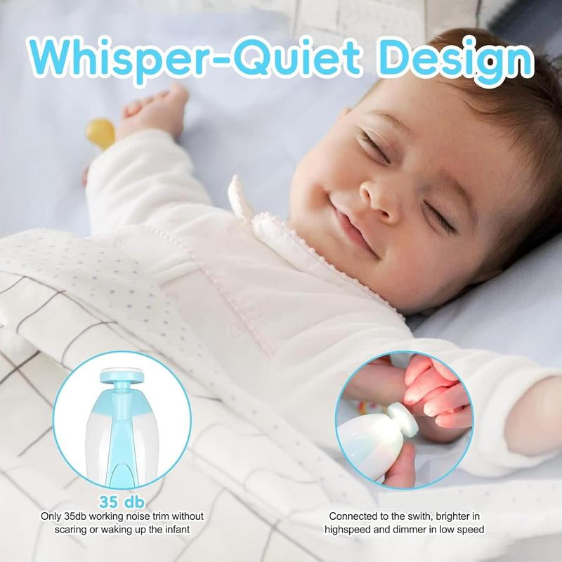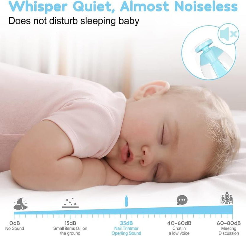 ❤【Noiseless Design】The volume of this baby nail file is only 35 dB. When your baby is sleeping, you can use this nail trimmer to grand your baby's nail, will not disturb your baby's sleep, and you can trim and care for your nails in dim and dark environment.