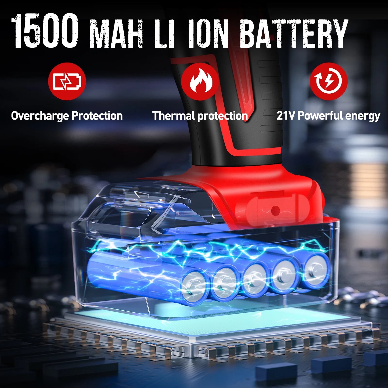 Cecil Crona 21V Cordless Power Drill Set – Drill Driver Kit with 2 Lithium-Ion Batteries, Charger, 3/8" Keyless Chuck & 32pc Bits | Essentials