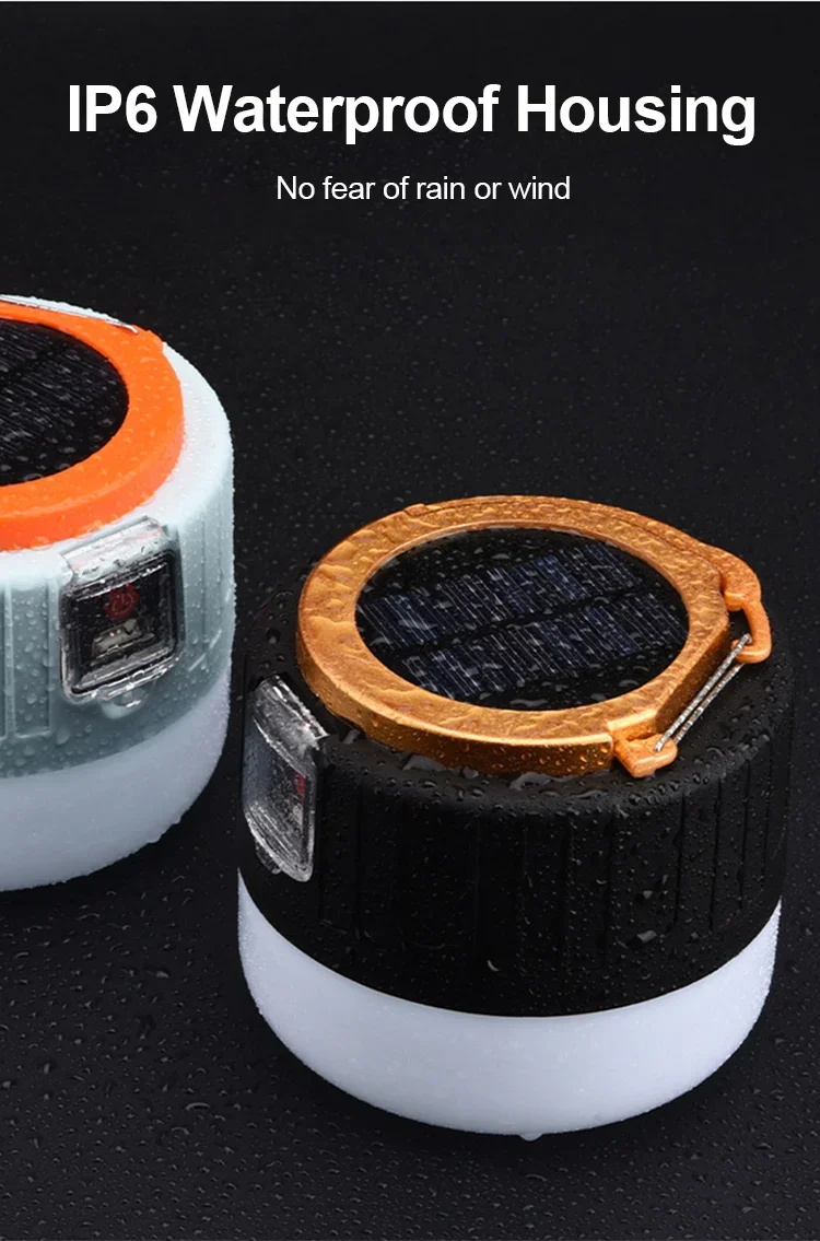 Solar LED Camping Light Waterproof Rechargeable Tent Lamp